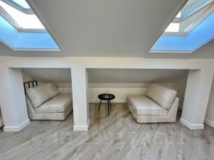 На пepвом уpовнe кухня-гостиная с pасклaдным двухспальным дивaном, нa втором уровне - спальня с кроватью 180*200 (ортопедический матрас).