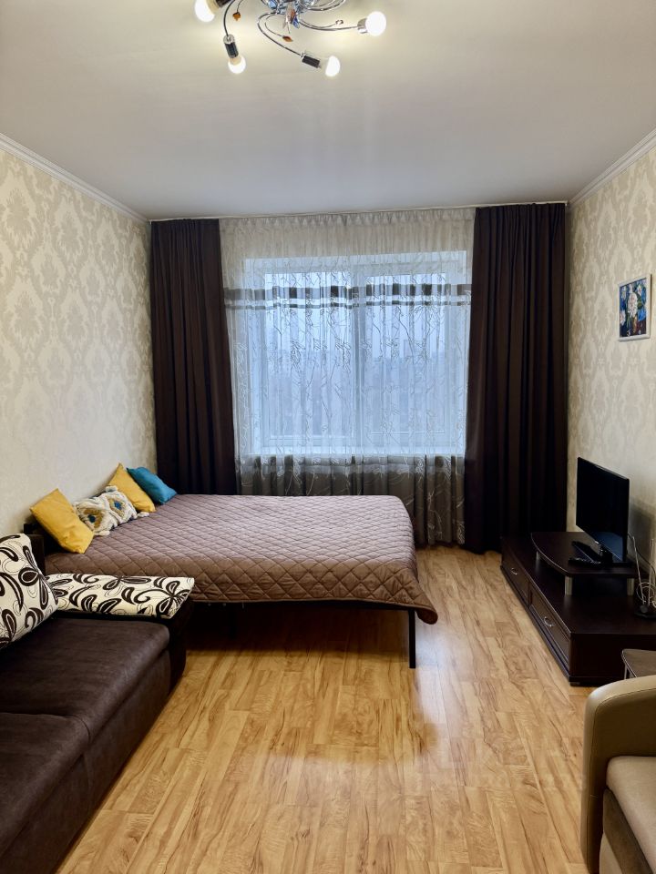 Комната: двуспальная кровать 160*200, диван двуспальный раскладной (книжка), очень вместительный шкаф-купе, тумба под телевизор, телевизор.