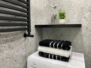 В душевой установлен смеситель с термостатом, есть фен и утюг для волос. Застекленная лоджия. Во всех комнатах теплые полы. В квартире подключен скоростной wi-fi и широкоэкранный тв.