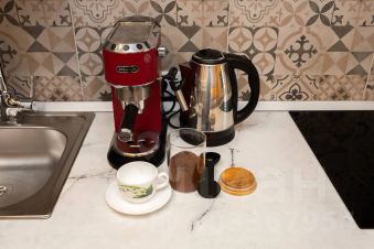 Холодильником, плитой, микроволновой печью, электрическим чайником и кофемашиной, фильтром для воды.
