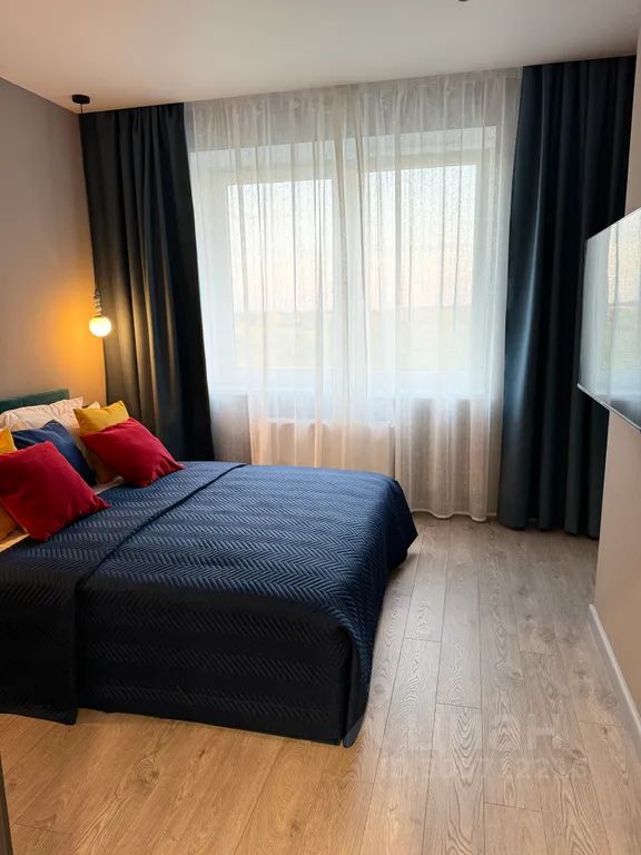 В спальне двухспальная кровать 160х200 см телевизор для просмотра любимых фильмов