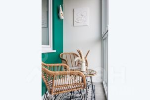 застекленная лоджия со столиком и стульями, освещением