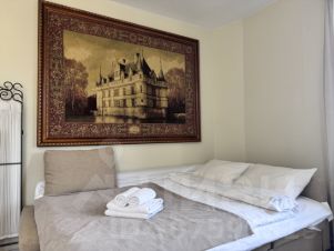 Уютная двуспальная кровать и раскладывающийся диван