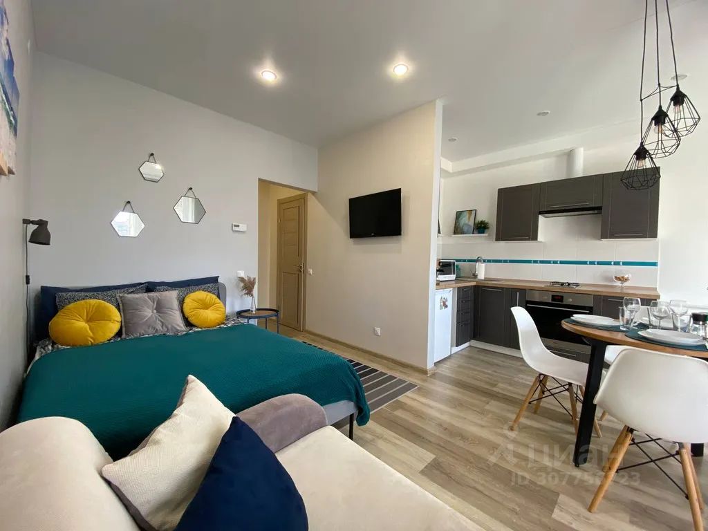 Сдаётся уютная квартира-студия в новом благоустроенном и огороженном жилом комплексе у озера Тихое и лесного массива в Светлогорске. Курортная часть города - Светлогорск-2, море в пешей доступности.