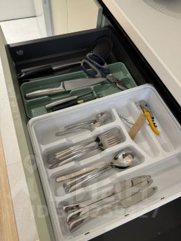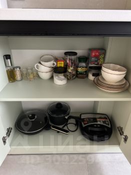 - чайник, микроволновая печь, вафельница, кухонные принадлежности, посуда, чай, кофе , сахар , конфетки ;