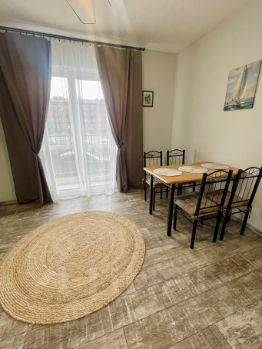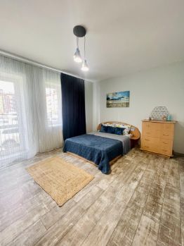В каждой комнате есть выход на балкон, раздельный сан узел, просторная кухня и две спальни с 1,5 спальными кроватями. Интернет, телевидение, техника.