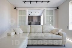 Вся техника новая и премиальная: СВ печь, зеркальный холодильник, духовка, посудомоечная машинка, стиральная. Диван из натуральной кожи, раскладной на два спальных места. Два шикарных кресла в лоджии и стулья с поворотными механизмами. Журнальный столик на колесах.