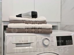 Утюг, гладильная доска, пылесос, бытовая химия, свежее постельное белье и полотенца на каждого гостя;
