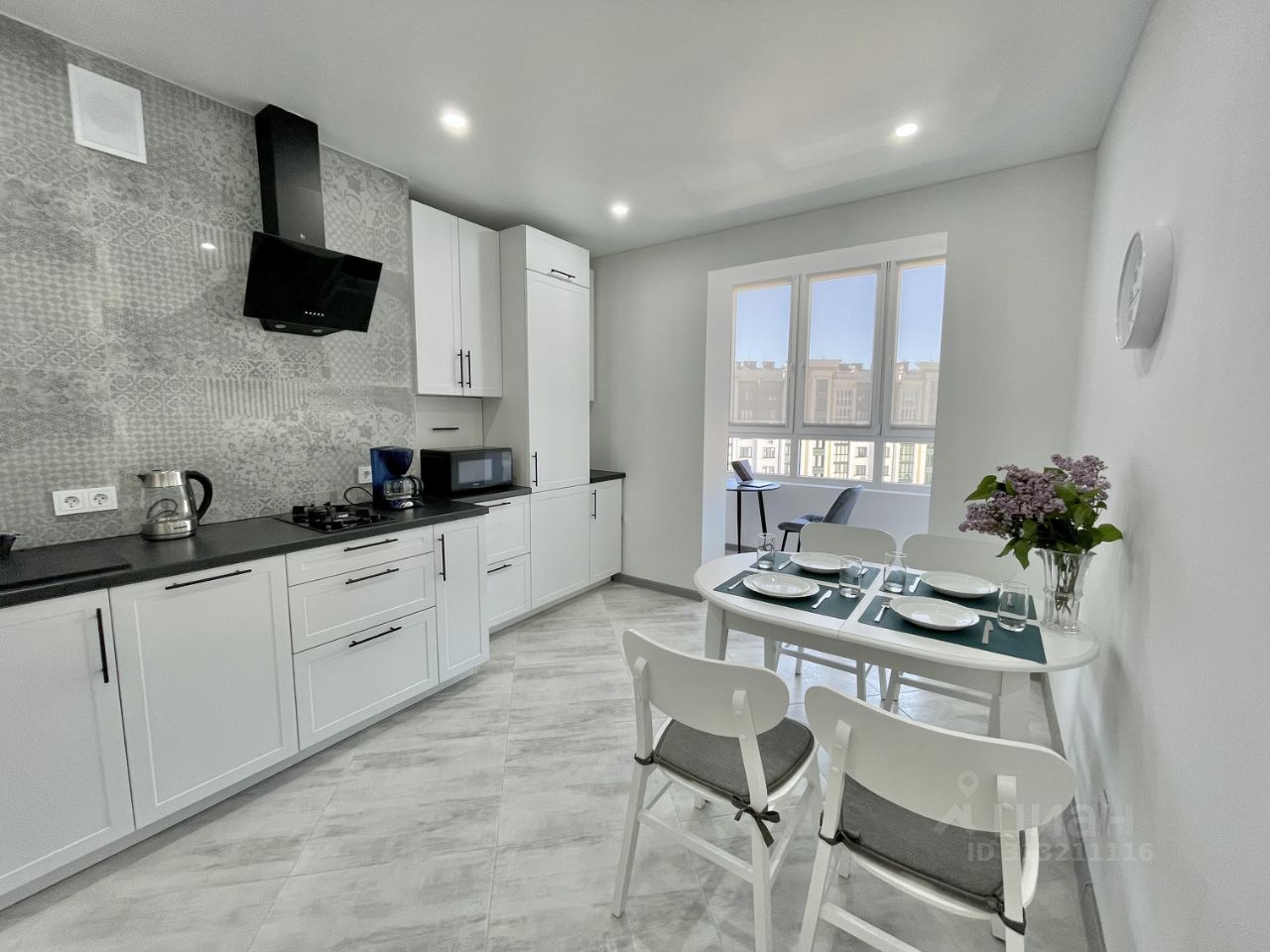 кухонная зона — кухонный гарнитур, газовая варочная поверхность, микроволновка, электрический чайник, вся необходимая посуда, холодильник, посудомоечная машина, !