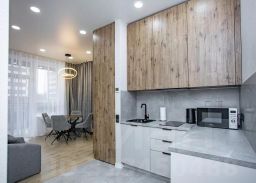 В распоряжении гостей: спальня с кроватью queen-size и гардеробной системой хранения, кухня-гостиная с техникой премиум-класса: встроенный холодильник, посудомоечная машина, индукционная плита, обеденная зона, посуда премиум-класса (кастрюли, сковороды, столовые приборы, сервировка), функциональная зона отдыха: диван-трансформер, smart-телевизор, высокоскоростной Wi-Fi, постельное бельё, махровые полотенца, black-out шторы, лоджия.