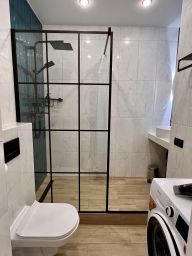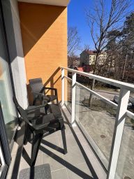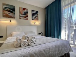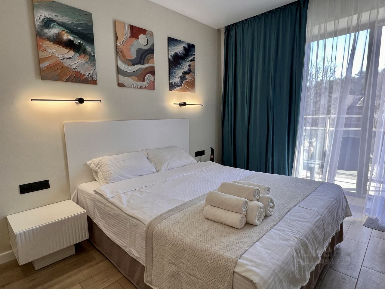 Апартаменты расположены в живописном спокойном и уютном месте в 500 метрах от моря и пляжа в шестиэтажном новом 2022 года постройки. комплексе с апартаментами в лесистой местности города Светлогорском в сторону посёлка Отрадное. С севера он ограничен лесополосой, с юга и запада — густым сосновым лесом.