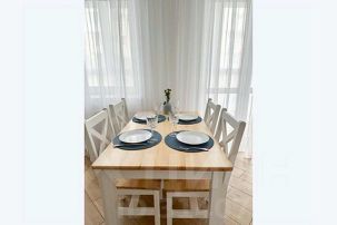 Семейные апартаменты в Зеленоградске Предлагаем вашему внимаю квартиру для семьи или для путешествий с друзьями на побережье Балтийского моря. Квартира рассчитана для отдыха 4 гостей. Диван в гостиной позволяет дополнительно разместить еще 1 человека. - Красивый широкий оборудованный Западный пляж максимум 5 минут пешком от апартаментов. От Западного пляжа начинается морской променад, по которому вы можете прогуливаться вдоль моря. От Западного пляжа оборудованная велодорожка приведет Вас к Пионерску и Светлогорску Остановка электрички в 2 минутах пешком от дома позволит добраться до центра Калининграда На огороженной территории нашего дома Вы можете воспользоваться бесплатным паркингом В квартире есть все необходимое для Вашего комфортного отдыха постельное белье, полотенца, шампунь, кондиционер для волос, гель для душа, фен, стиральная машина, микроволновка все для того, чтобы вы почувствовали нашу заботу о Вашем отдыхе. Насладитесь утренним кофе на уютной кухне-гостиной с балконом с панорамными окнами. Есть также все необходимое для приготовления еды для вашей компании.