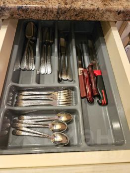 Чистое постельное бельё, кухонные принадлежности, полотенца, фен, утюг, посуда, столовые приборы, моющие принадлежности. В кухне установлен фильтр аквафор для очистки питьевой воды.