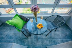 В квартире создано все для удобства и отдыха 4-х гостей. удобная большая кровать зона отдыха на балконе Wi-Fi интернет, Smаrt ТV Укомплектованная кухня для полного цикла приготовления еды (газовая плита, микроволновая печь, холодильник, духовой шкаф, полный набор посуды и кухонных принадлежностей) стиральная машинка просторный санузел с ванной и гигиеническими средствами необходимое постельное бельё вместительный шкаф, фен, утюг, гладильная доска