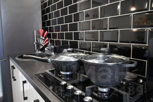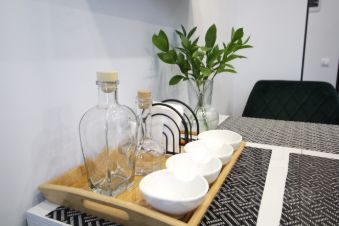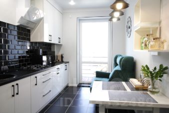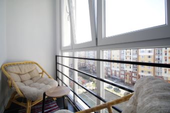 Кухня: холодильник, газовая варочная панель, микроволновая печь, эл. чайник, тостер, кофемашина, ТВ, посуда (бокалы, чашки, столовые приборы, сковорода, кастрюля и т.п.), чай/кофе. Выход на лоджию.