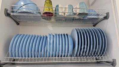 холодильник, вся необходимая посудаи