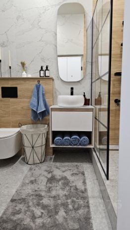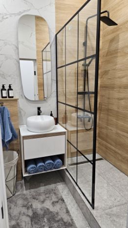 Санузел с просторной душевой, стиральной