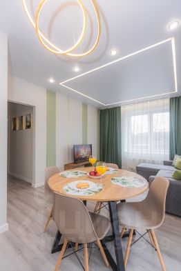В квартире есть полноценная спальня и отдельная кухня-гостинная. У нас с комфортом можно разместиться 4 взрослым или семье с детьми.