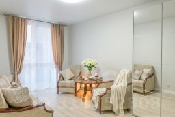 Трехкомнатные апартаменты с двумя балконами на первом этаже семиэтажного дома на Олимпийском Бульваре.