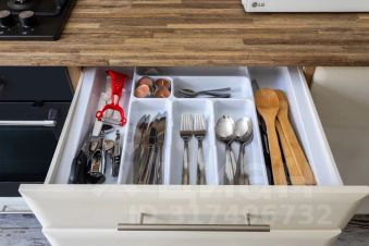 Кухня с техникой и посудой