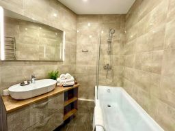 Удобно для гостей с ограниченными возможностями: на верхние этажи гостей поднимает лифт. А ещё в распоряжении гостей гладильные услуги и прокат автомобилей. Сотрудники апартаментов поддержат беседу на русском.