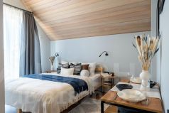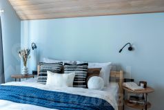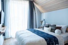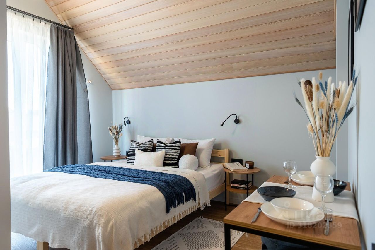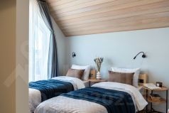 - спальня с панорамным окном, оборудованная двуспальной QueenSize кроватью или 2 односпальной кроватями (по предпочтению) с ортопедическими матрасами