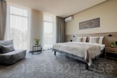 Cовременный отель GREENGATE HOTEL&SPA**** расположен в городе-курорте Зеленоградск Калининградской области, в пешей доступности до побережья Балтийского моря, на границе с национальным парком, охраняемым ЮНЕСКО и включенным в список Всемирного достояния человечества "Куршская коса", в 20 минутах на автомобиле от международного аэропорта "Храброво", и в 30 км от центра г. Калининград. Концепция SPA-отеля GREENGATE ориентирована на ценителей спокойного, оздоровительного, семейного отдыха, индивидуальных туристов, а так же располагает MICE возможностями для делового туризма. Преимущества отдыха на балтийском побережье дополняются успешным сочетанием международных стандартов сервиса с русским гостеприимством, высоким уровнем комфорта, уютной атмосферой, богатой инфраструктурой предоставляемых услуг и доступностью цен. Идеология GREENGATE - Relax&Explore (Расслабляйся и исследуй!) и Job&Leisure (Работай и отдыхай!). Добро пожаловать в мир GREENGATE, созданный с любовью для единомышленников, ценящих комфорт, красоту, здоровье и долголетие! Отель располагает 96 номерами различных категорий, в том числе для людей с особенными потребностями, оборудованных в соответствии со стандартами гостиниц категории 4 звезды, и богатой инфраструктурой услуг: лобби бар, ресторан, трансформирующийся в конференц-зал, SPA зона с фитобаром, wellness и спорт пространство, консьерж-сервис, бизнес-центр, широкий спектр прокатных услуг, сувенирный киоск, бесплатный высокоскоростной Wi-Fi на территории всего отеля, собственная парковка. Все номера GREENGATE HOTEL&SPA оснащены панорамными окнами с димаутами, функциональной мебелью, ортопедическими матрасами для комфортного сна, качественным постельным бельем и аксессуарами для душа. В отделке номеров использованы экологичные и безопасные материалы: дерево, природный камень, натуральные ткани. Интерьеры номеров выполнены в светлых, теплых тонах с элементами эко-стиля. В каждом номере имеется санузел с душевой, LED телевизор с плоским экраном, розетки с USB, телефон, мини-бар, сейф, чайная станция с бесплатными принадлежностями для приготовления чая и кофе, бутилированная питьевая вода, фен, индивидуальные туалетно-косметические принадлежности, махровые халаты, тапочки. В номерах высших категорий установлены капсульные кофемашины. Комнаты на 2, 3, 4 этажах располагают меблированными балконами. Отель располагает 2 номерами категории Полулюкс, расположенными на 1 этаже здания. Комнаты оснащены панорамными окнами с димаутами, функциональной мебелью, ортопедическими матрасами для комфортного сна, качественным постельным бельем и аксессуарами для душа. В каждом номере имеется санузел с душевой, LED телевизор с плоским экраном, розетки с USB, телефон, мини-бар, сейф, чайная станция с бесплатными принадлежностями для приготовления чая, бутилированная питьевая вода, фен, индивидуальные туалетно-косметические принадлежности, махровые халаты, тапочки. Площадь номера 30 м2. Каждый гость сможет подобрать тип размещения согласно своим пред