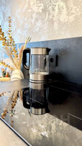 - Оборудованная кухня, с питьевой водой прям из-под крана, благодаря системе фильтрации (посудомоечная машина, индукционная плита, микроволновка, чайник, полный комплект посуды для приготовления и приёма еды)