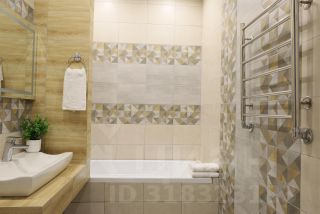 Ванная комната с ванной, мягкими полотенцами и туалетными принадлежностями