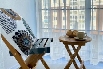 Светлая теплая лоджия, где по утрам Вы сможете выпить чашку свежесваренного кофе с хорошим видом из окна.
