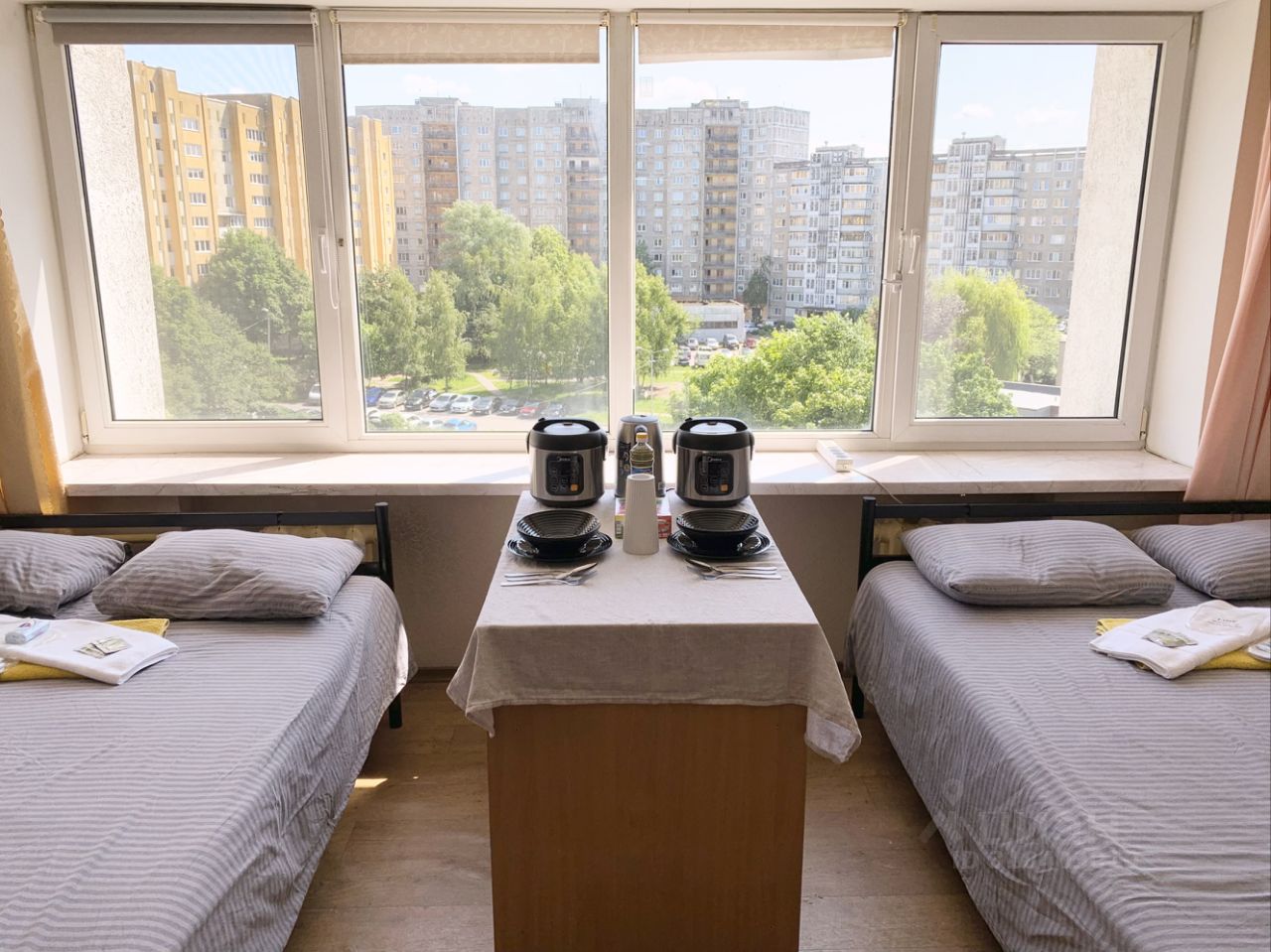 Самая большая комната с двумя двуспальными кроватями, в образцовом общежитии в центре города Калининграда с лифтом и консьержем 24/7.
