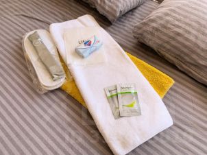 •Зубные щетки и паста, разовые гель для душа и шампунь, стиральный порошок, туалетная бумага, влажные салфетки.