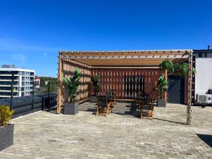 -Фишка нашего комплекса это терраса на крыше с видом на город и озеленением, шезлонгами и душевыми и зонами отдыха