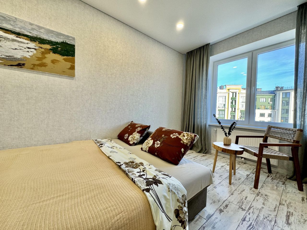 В самой зеленой части Зеленоградска, чудесная новая квартира в красивом ЖК с огороженной парковочной зоной. В квартире очень тихо и уютно.