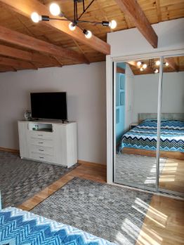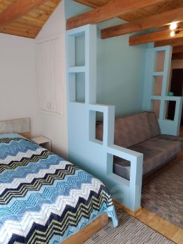 * двуcпaльнaя кpовать, двуспальный диван, полотенца, постельное бельё.
