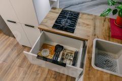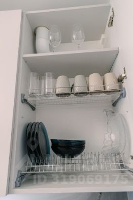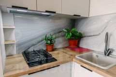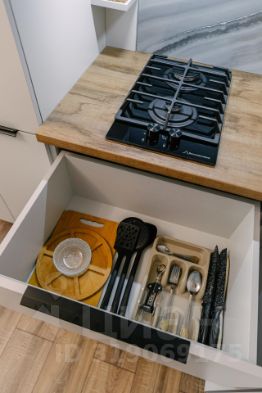 - оборудованная кухня (холодильник, микроволновка, газовая кухонная плита, чайник, посуда и столовые приборы, средство для мытья посуды);