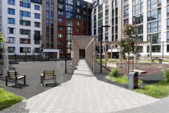 Дом комфорт класса 2022 года постройки: зона wоrkоut, зона для выгула собак, детская игровая площадка, зона отдыха для взрослых, 80 парковочных мест, баскетбольная площадка, деревянная арка с живыми растениями, крытые контейнеры для мусора.