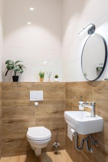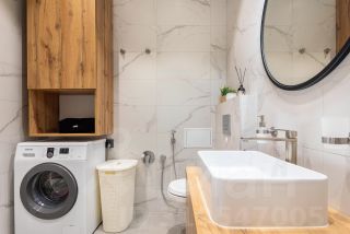 Квартира оснащена двумя санузлами: с полноценной ванной и совмещённым санузлом с раковиной.