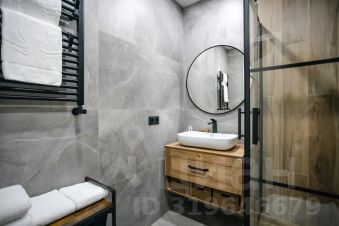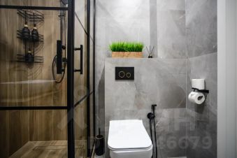 Светлая ванная с просторной душевой кабиной, большим зеркалом и удобными местами для хранения