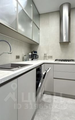 Кухня со всей необходимой техникой: холодильник, плита, чайник, кофеварка, посудомоечная машина.