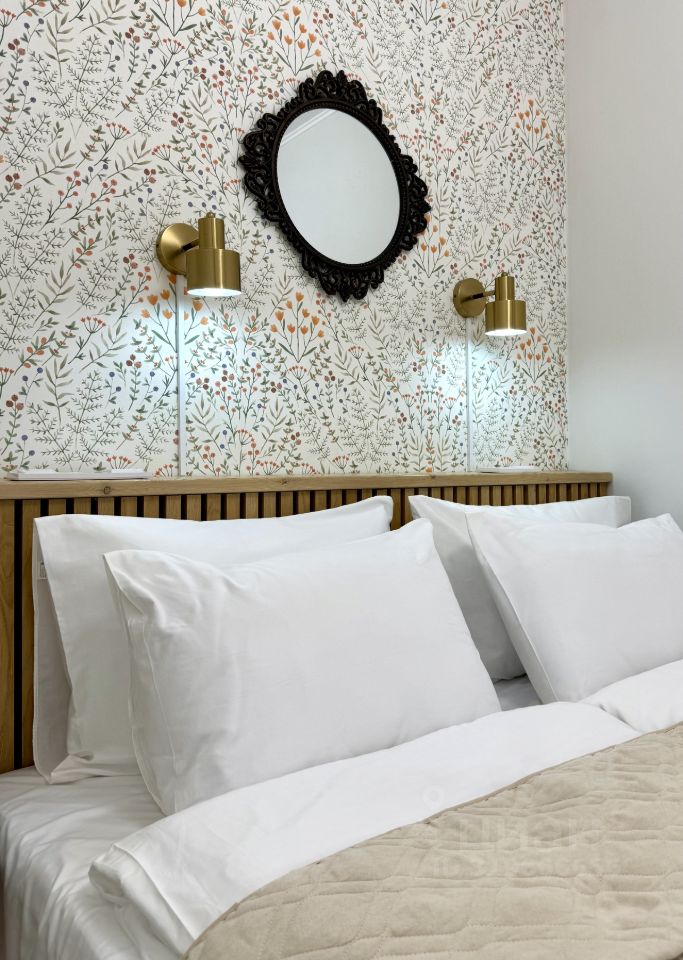 Просторная однокомнатная квартира с большой двуспальной кроватью и раскладным диваном.