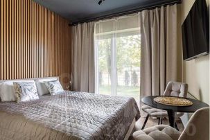В студии комфортно разместятся два человека (двуспальная кровать).