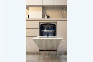 Кухня со всем необходимым (холодильник, плита, духовка, вытяжка, микроволновая печь, чайник, посудомойка, а так же посуда и приборы)