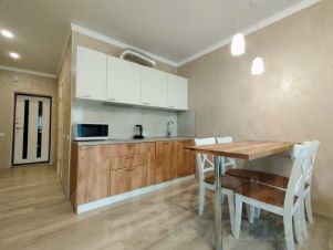 Апартаменты светлые, чистые и уютные. C новым еврорeмонтoм. Общая площадь квартиры — 33, 8 м², 5-й этаж (шестиэтажного дома). Отопление автономное (горячий пол, электрокотёл). Окна во двор. Домофон. Лифт. Парковочное место огорожено шлагбаумами.