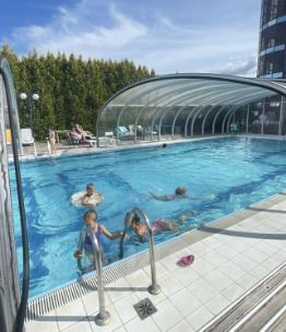 Всего в 2 мин находится открытый подогреваемый круглогодичный бассейн Олимп, вблизи озеро Тихое с различными водными аттракционами и великолепный парк с вековыми соснами.