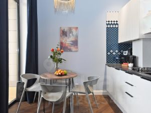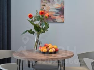 Светлая, солнечная студия с дизайнерским ремонтом и просторной лоджией с потрясающим видом на город Можно наслаждаться кофе за небольшим столиком и идеально расслабиться благодаря шторкам блэкаут для сладкого сна