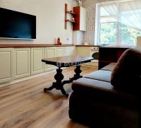 Три спальных места, в комнате большая комфортная двуспальная кровать и раскладное кресло, в гостиной раскладной диван на двоих. До 5-ти человек. Можно с собачкой. Кошка категорически нет. Квартира оснащена всем необходимым для комфортного проживания, есть посудомоечная машина, Wi-Fi. Автономное газовое отопление от двухконтурного котла, что позволяет регулировать температуру в квартире по своему усмотрению, датчики газа и дыма. Минимальные коммунальные затраты.