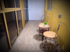 •просторный балкон с зоной отдыха и панорамными окнами , прекрасный вид на город
