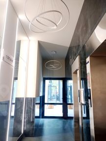 • три подъезда дома совмещены на этажах - четыре лифта на этаже