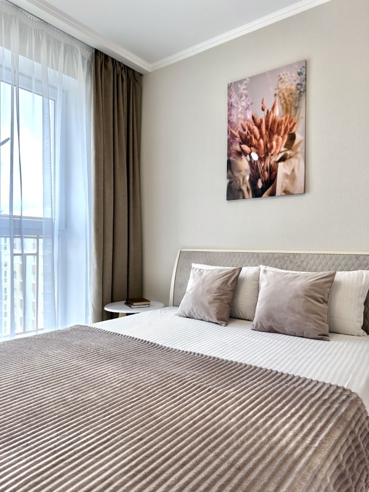 Квартира уютно обставлена и полностью готова к вашему отдыху после насыщенного дня. Отличная транспортная развязка позволит вам добраться до центра города за 20 минут, а до моря — всего за 40 минут на машине.